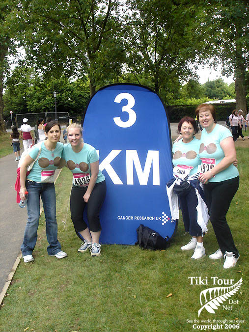 This year, ten of us decided to participate in the 5km Breast Cancer Research Race for Life in Regent's Park. It was a fun run or walk. Dominique and Simone finished it in an incredible 29mins and Jill and Sue were right behind in around 35 mins. Karen and Rosie walked and ran and finished next leaving Jill, Brenda, Corinna, and myself trailing. I had trained with Dom for weeks before hand but wasn't up to running on the day. I did give the last kilometre a go and it almost killed me! Dom was encouraging me along for the last few hundred metres and this very sweet lady running beside me also said "come on" which was a huge motivation boost. Jill L made us the t-shirts and they look brilliant. The design came from a longstanding joke when Dom, Jill and I sang 'Do You Like Pina Coladas?' all around Paris. Karen suggested that we submit the design to Glassons for their annual ts. Watch this space :) |