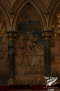 Painting on the wall in the chapter house. They had a display about filming of the Da Vinci Code, which was done here because Westminster Abbey wasn't available. |