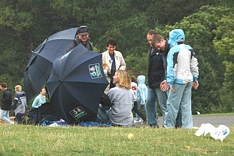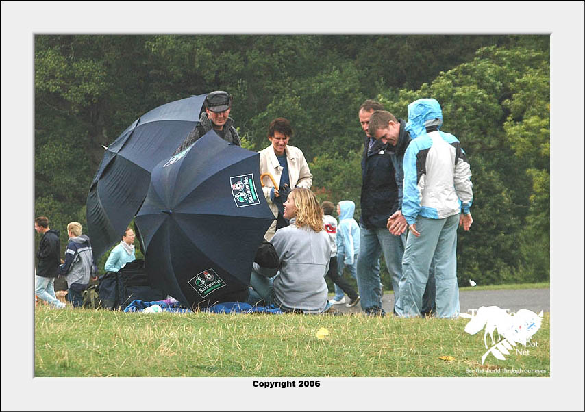 Lovely English summer weather of the sub antarctic kind! The picture on the right is what you get when a million people are trying to leave after the event was cancelled because of bad weather!