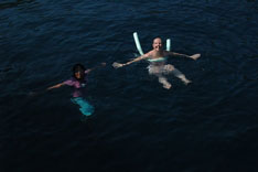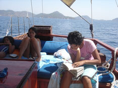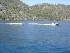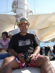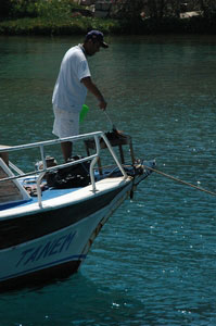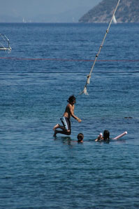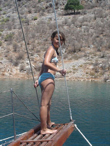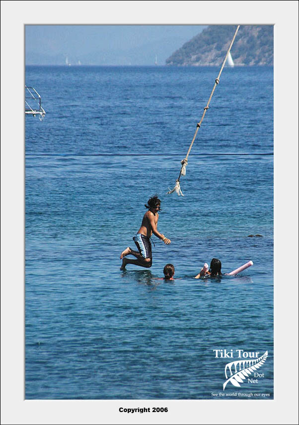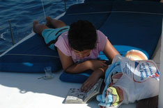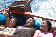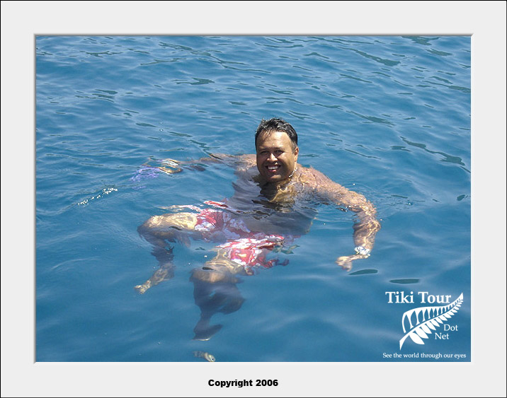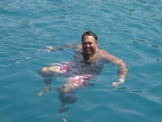 Eimii about to jump off the back of the boat at our first stop. Again the water was amazingly warm! |