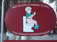 After we had finished at Ephesus (and weathered the hawkers as we left, who were shouting "kiwi, kiwi, ka mate, ka mate..come buy from me") we headed off for a spot of lunch. Perhaps the funniest sign we have ever seen was near the entrance to the toilets :) |