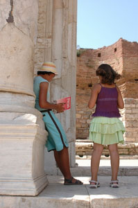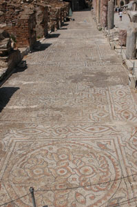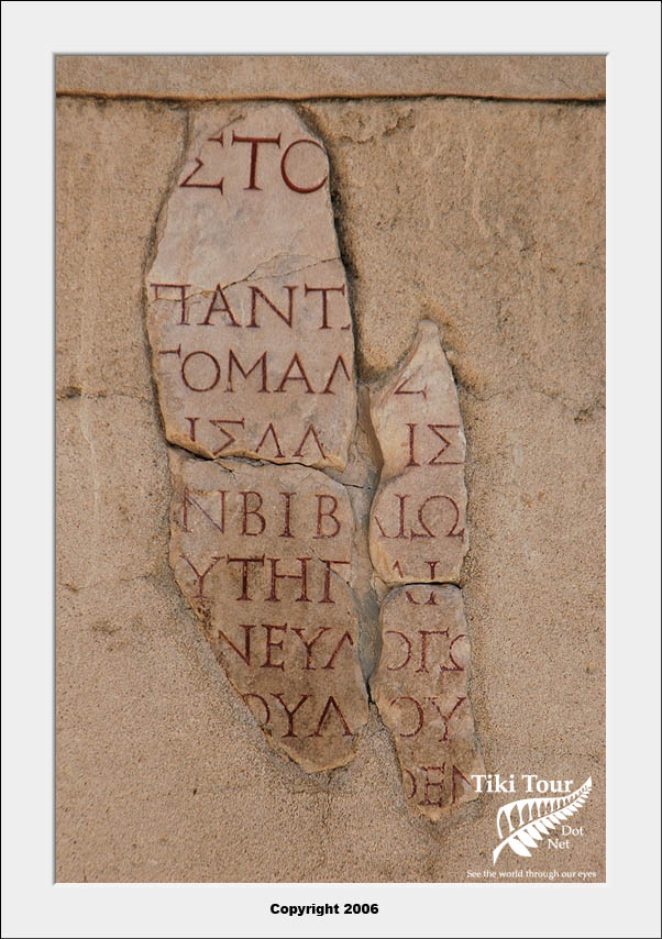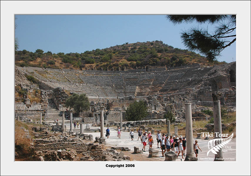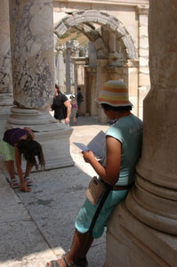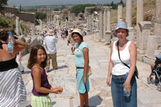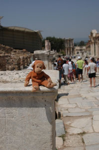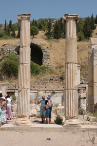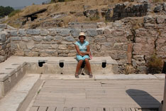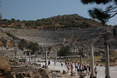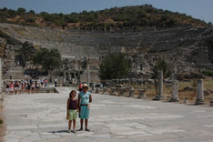 The coliseum of Ephesus is huge...and its still used today for various performances (anyone for camel wrestling?:) At its height it could take 25,000 people and you can still see the holes in the ground where poles and extra fencing were placed for when gladiators fought against animals (you cant go having your paying public killed off by wild animals now can you:) What is really cool though is when you stand in the middle and merely talk loudly, you can hear your voice being amplified and carried up to the crowds in the top rows! |