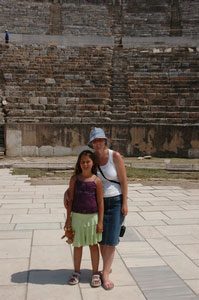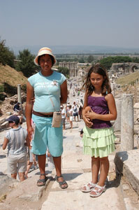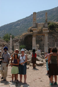 The drive to Ephesus from Dalyan took us around 4 hours and it was stinking hot! In fact it probably didn't help that the 5 horse power engine in our bus lost 4 horses when the air con was turned on! Consequently most of the trip was driven with the air con turned off!