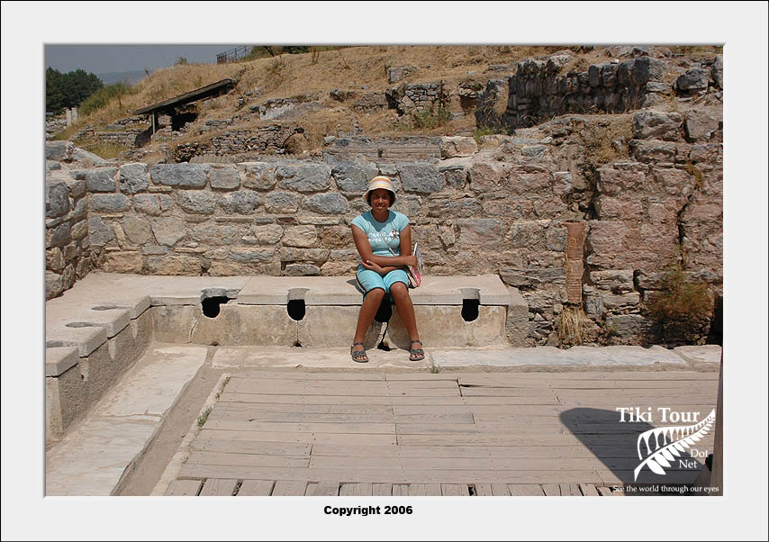 Wharepaku! Whetu using the communal Roman toilets :) |