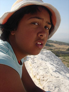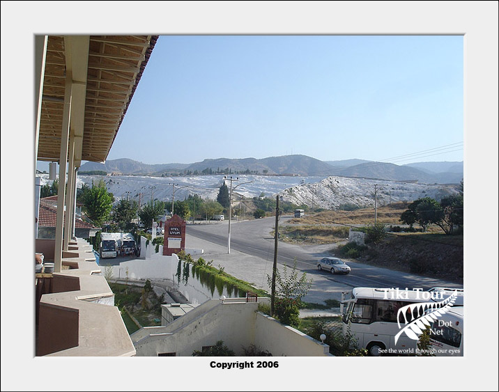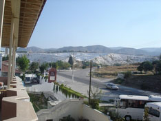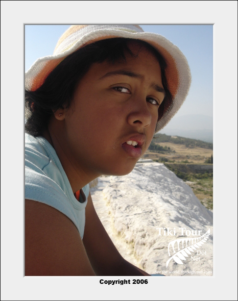 After leaving the museum in Ephesus it was back on to our 5 horse power bus and on to Pamukkale. What we didn't realise when we booked the trip was that Pamukkale was a further three hours drive from Ephesus...and in a bus with no air con on a stinking hot day with seats for anorexics made a very uncomfortable drive! |