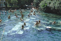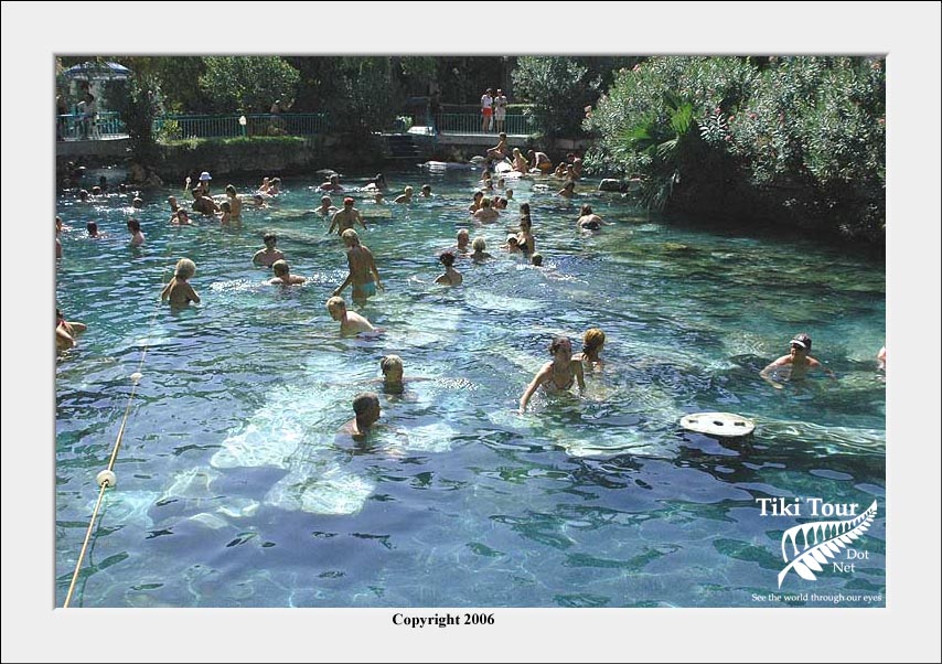 Above Pamukkale is an ancient city called Hierapolis. Some of the ruins were destroyed when hotels were built there. One of the remnants of those hotels was this pool, which was left after the hotel was pulled down by UNESCO. |