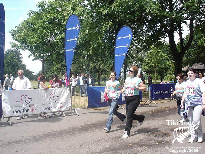 This year, ten of us decided to participate in the 5km Breast Cancer Research Race for Life in Regent's Park. It was a fun run or walk. Dominique and Simone finished it in an incredible 29mins and Jill and Sue were right behind in around 35 mins. Karen and Rosie walked and ran and finished next leaving Jill, Brenda, Corinna, and myself trailing. I had trained with Dom for weeks before hand but wasn't up to running on the day. I did give the last kilometre a go and it almost killed me! Dom was encouraging me along for the last few hundred metres and this very sweet lady running beside me also said "come on" which was a huge motivation boost. Jill L made us the t-shirts and they look brilliant. The design came from a longstanding joke when Dom, Jill and I sang 'Do You Like Pina Coladas?' all around Paris. Karen suggested that we submit the design to Glassons for their annual ts. Watch this space :) |