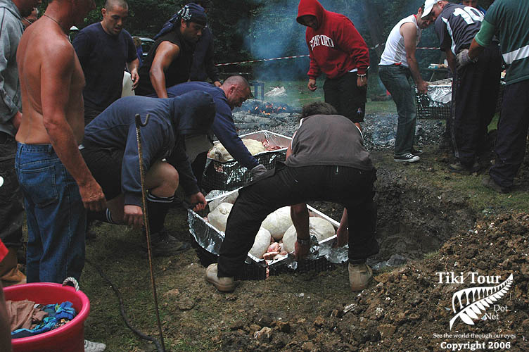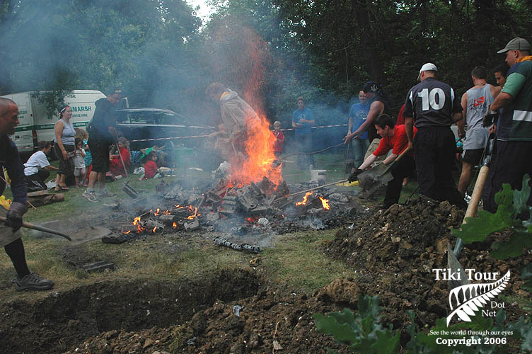 Kai going in to the Hangi. |