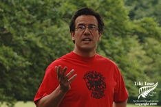 Stan explaining to the Manuhiri what Kohanga does during the Powhiri. |