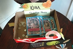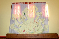 The backdrop to Maui and the Sun, this sun was made from the paper local kids used to draw the designs they wanted painted on their faces. It now hangs in one of the local schools in their dinner hall. |