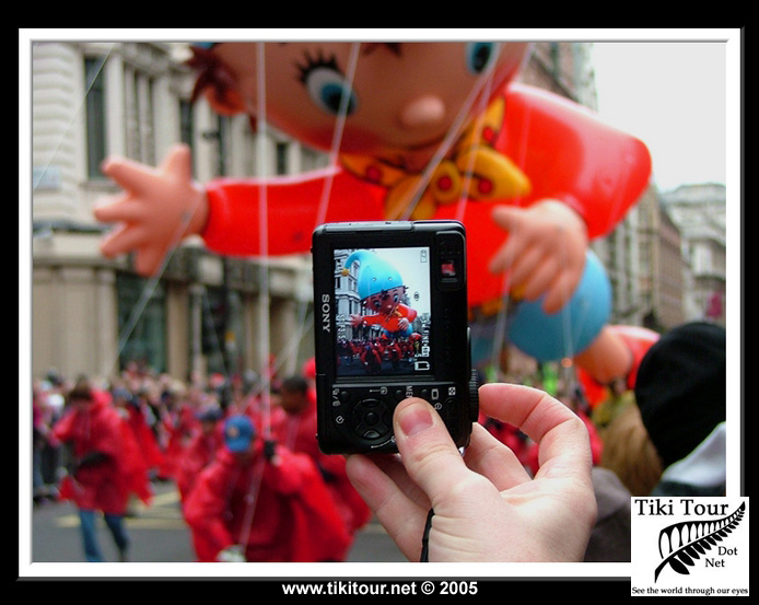London's New Years Day Parade We didn't quite make it to London's new years day parade in 2004 so we made sure we did this year! And it was awesome, well worth the effort to get there! Michelle captures Noddy as he "floats" past us. |