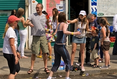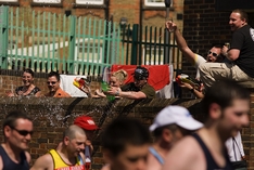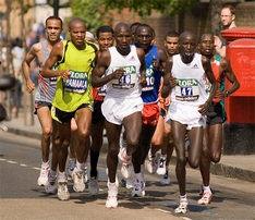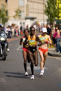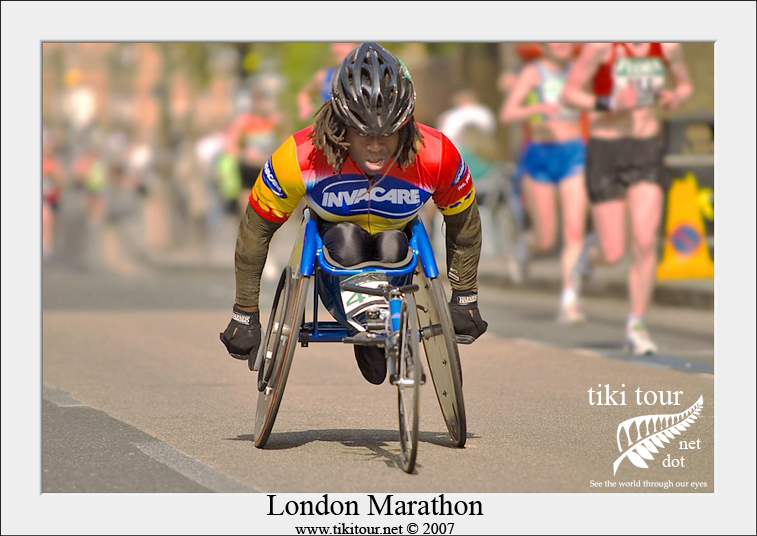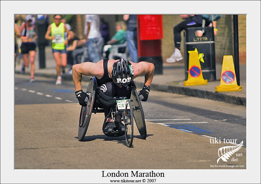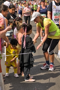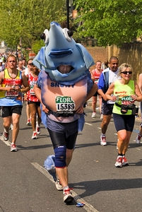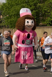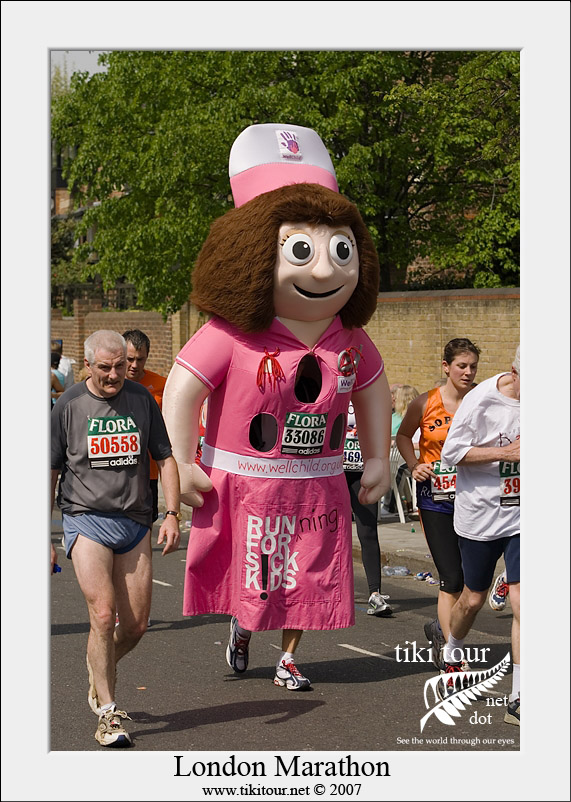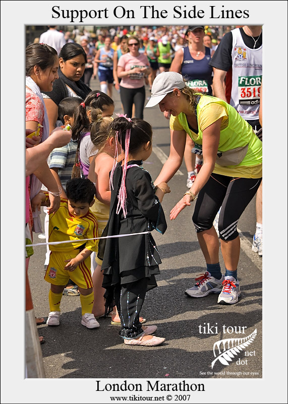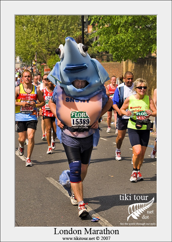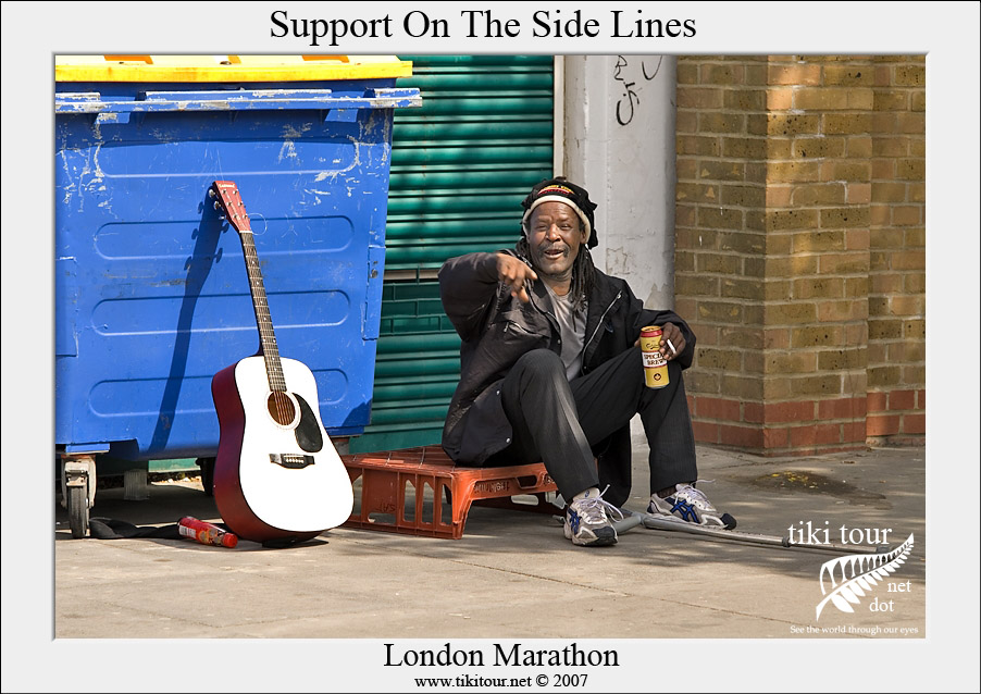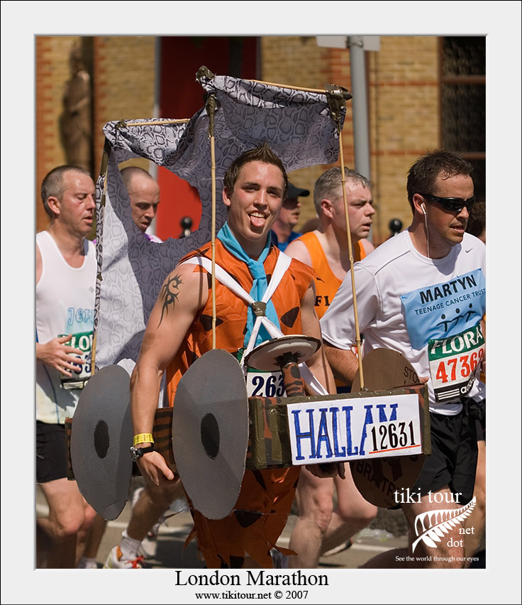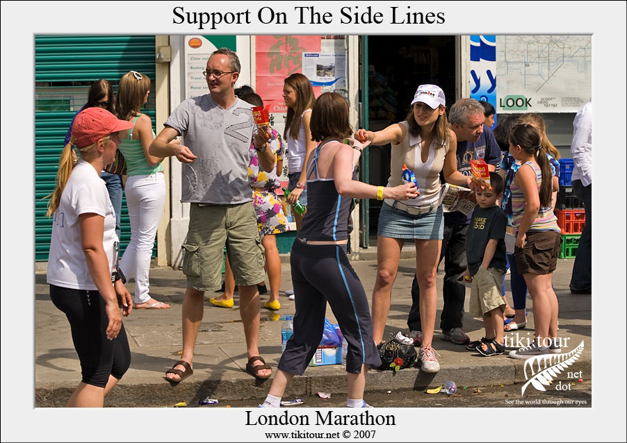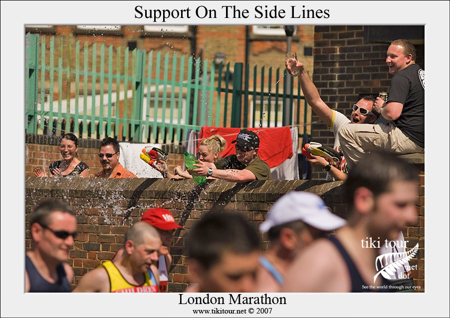 The weather this year was gloriously sunny. Good news if you are watching, not so good if you are running. Apparently the hottest ever day the Marathon has run on. Unfortunately 1 person died because of the heat (strangely enough he died because he had drunk too much water). Apart from that one downer it was a great day to be out and about watching other people running themselves in to the ground.