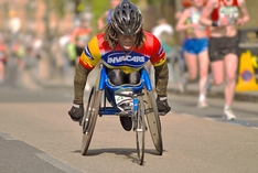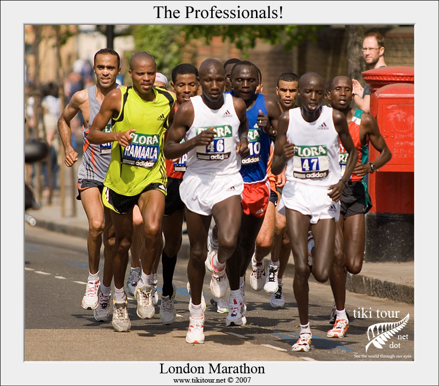 First passed were the professionals. Where we were standing was the 19 mile mark and it took the pro's a little over an hour to get here! |