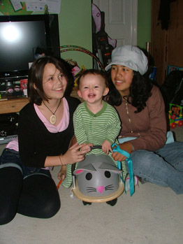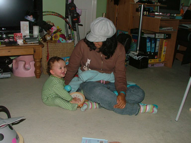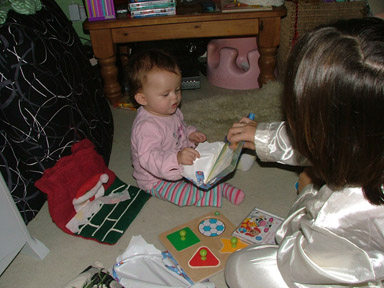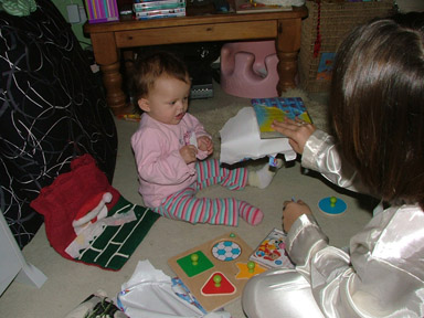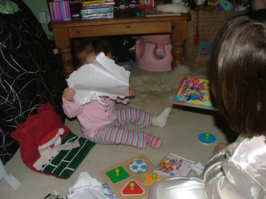 Kate spent most of the day playing with the wrapping from everyones presents and then later in the morning Aunty Karen and Uncle Paul joined us for brunch before we headed off to Whaea Maina's whare for chistmas dinner.
