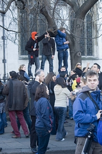 Waitangi Day here in London, unlike at home, is a day of celebration. There are no drama's, no one getting upset because the wrong flag was flown from a bridge and most certainly no offices getting invaded (mainly because everyone is at the pub)! Its really strange that you have to travel to the other side of the world to appreciate just how special Waitangi Day really is to kiwi's. For the last couple years we had been meaning to go down to Parliament Square to watch the mass Haka. Michelle was a bit tired and Eimii was a bit hoha so Scott headed down with his camera. |