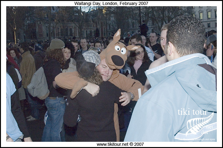 When Scott got down to Parliament Square it was absolutely heaving with kiwis bent on having a good time! Earlier in the day the traditional Circle Line pub crawl had wound its way along the Underground, ending at Westminster. Apparently the pub crawl has been going for the last 30 years! |
