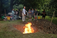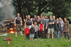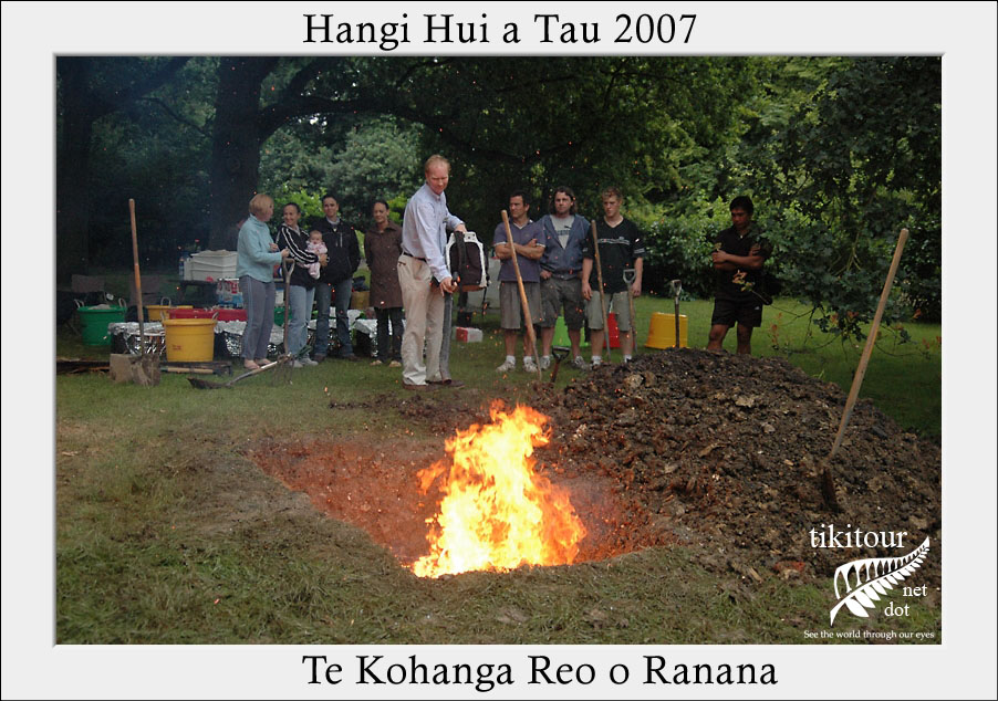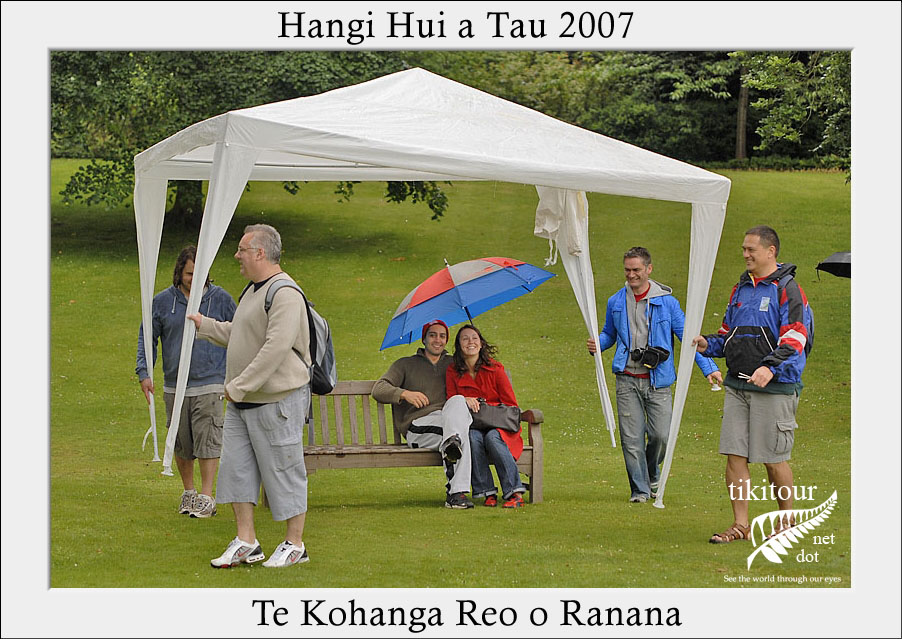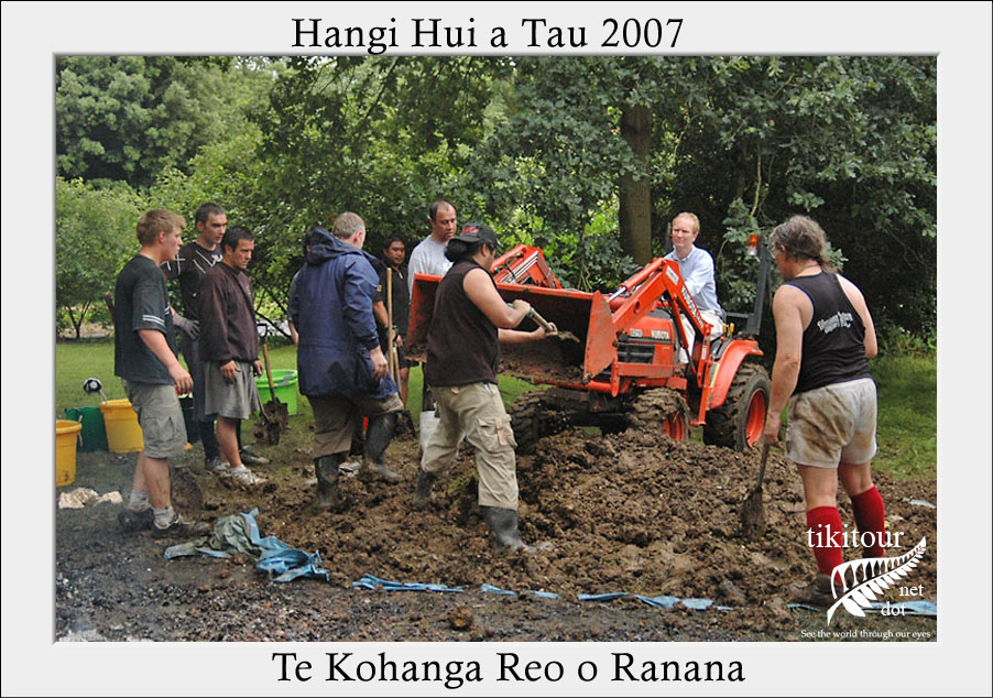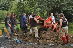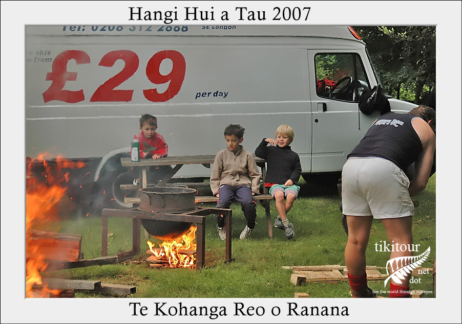 Every year Kohanga here in London holds a hangi at Clandon House in Kent. So there we are, digging a hole in the ground at 5am in the morning! This year, though, dawned wet and overcast! |