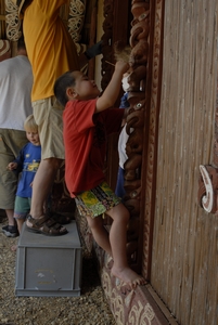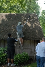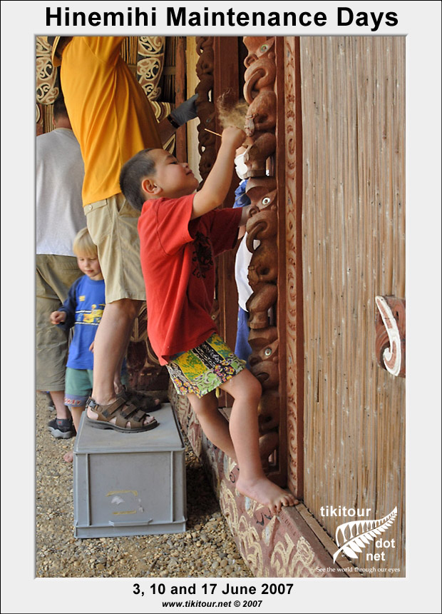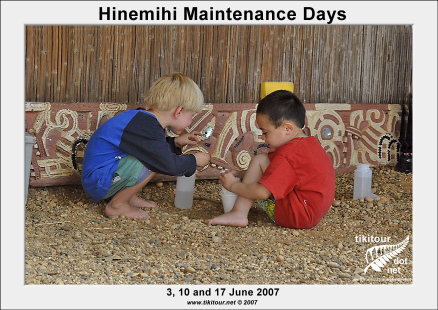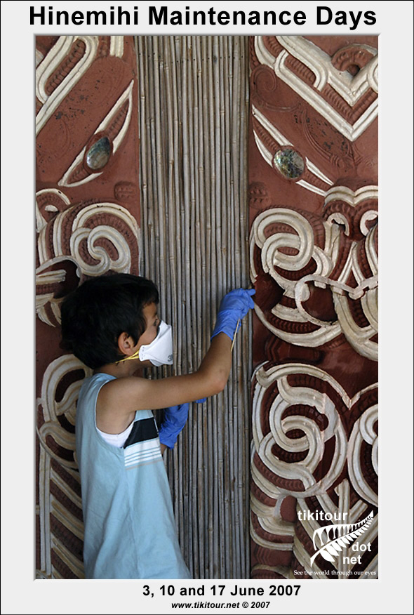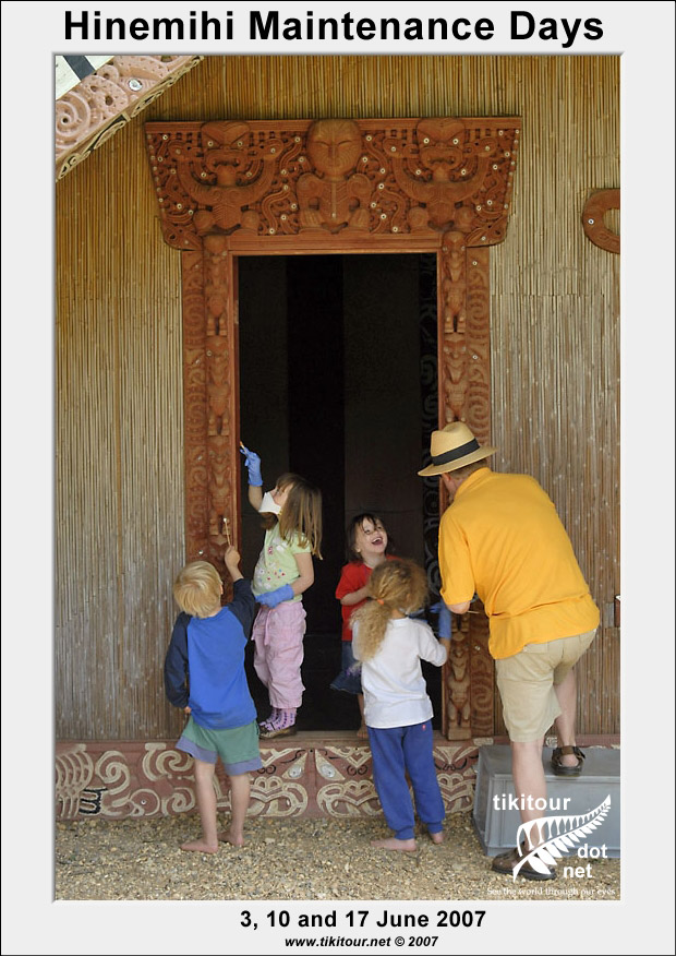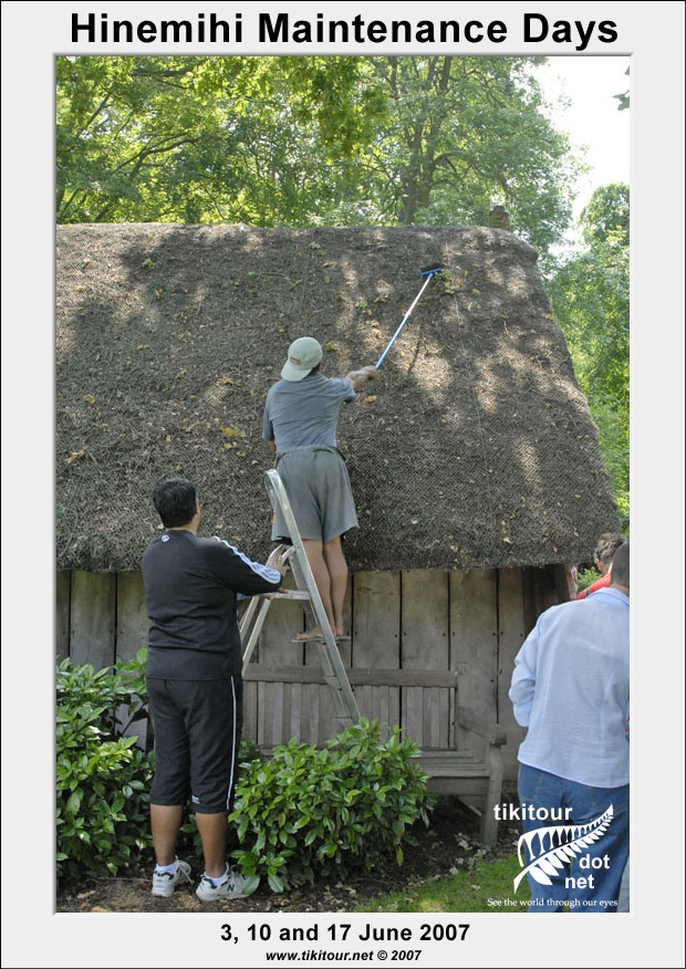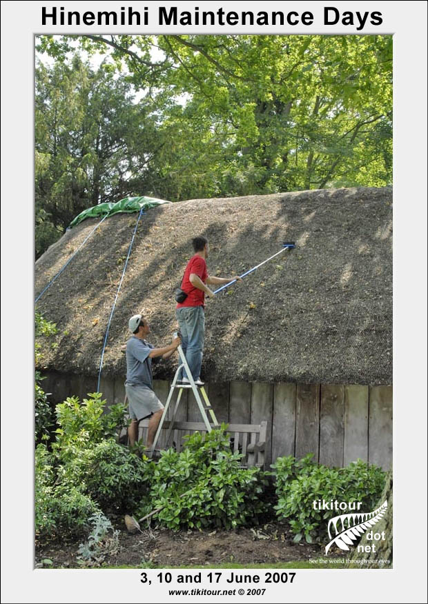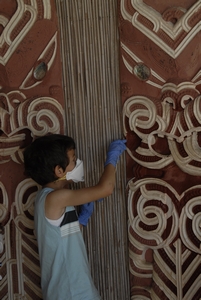 Every year just before Kohanga holds its annual hangi at Hinemihi, Dean Sully and his students from the Institute of Archaeology at UCL carry out a number of maintenance days with the aim of giving Hinemihi a good cleaning before her biggest day of the year. |