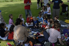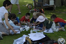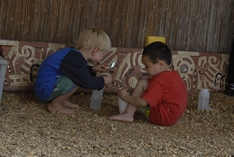 The Kohanga tamariki being entertained with drawing books and paints. | |