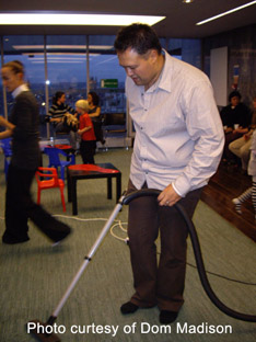 The product of an intensive 6 month training course, Scott on the vacuum cleaning after everything had finished! |