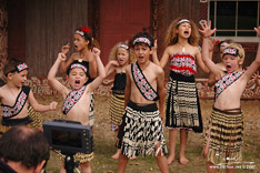 The day dawned really cold, and here the tamariki are rugged up against that cold! The morning was spent recording the sound and then the actions were filmed in the afternoon.