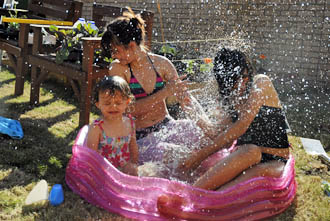 Eimii, Kaitlyn and Kate do bombs, staples and belly flops in Kates paddling pool! :)