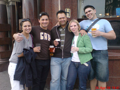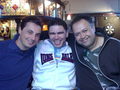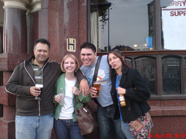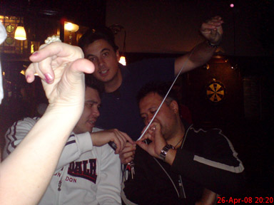After we had to leave the box at the stadium we wandered around and found a pretty tatty bar to drink in...and yes, that is a tape measure. Don't ask why Adrian has a tape measure on him?!? :)