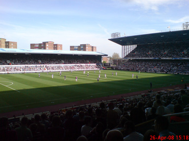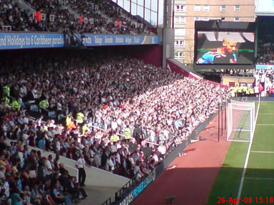 The game underway. For most of the first half, the Newcastle supporters sat there watching a stink game...BUT with 10 minutes left of the first half, they finally came alive as Newcastle drew level at 2 all. |