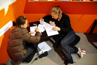 The reason for our visit was the Charlie and Lola exhibition at the Manchester Art Gallery. Kate and Eimii busy writing their blockbuster!