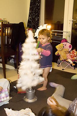 Taadaa! Several hours after starting, one decorated christmas tree! (after Kate had taste tested all the baubles:)
