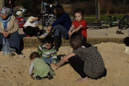 Making the most of the sunshine, Kate, Maru. Roimata and Eimii playing in the sandpit at Greenwich Park. If you are wondering why Kate looks like she knows what she is doing, its because she builds sand castles in the huuuuuge box of washing powder at home! :) |