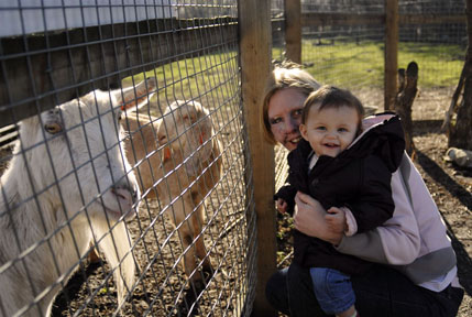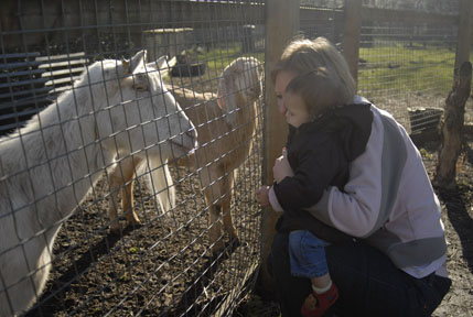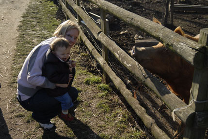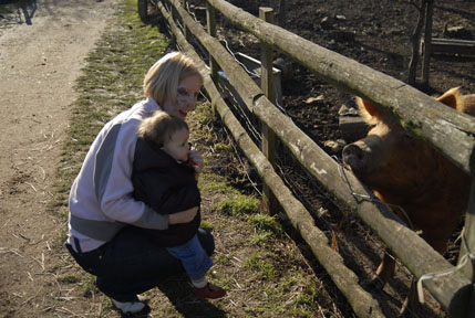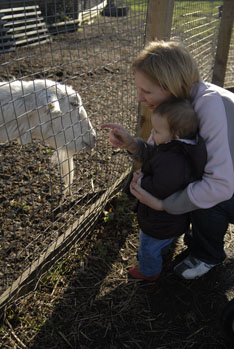 Kate loved looking at the animals but when they came up to say hello, she got all shy and would snuggle in to mum and dad as they got close! :) |