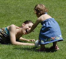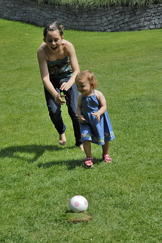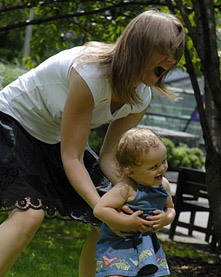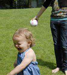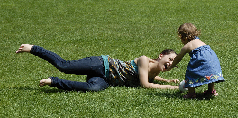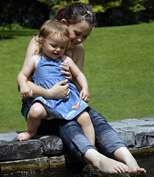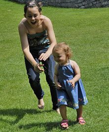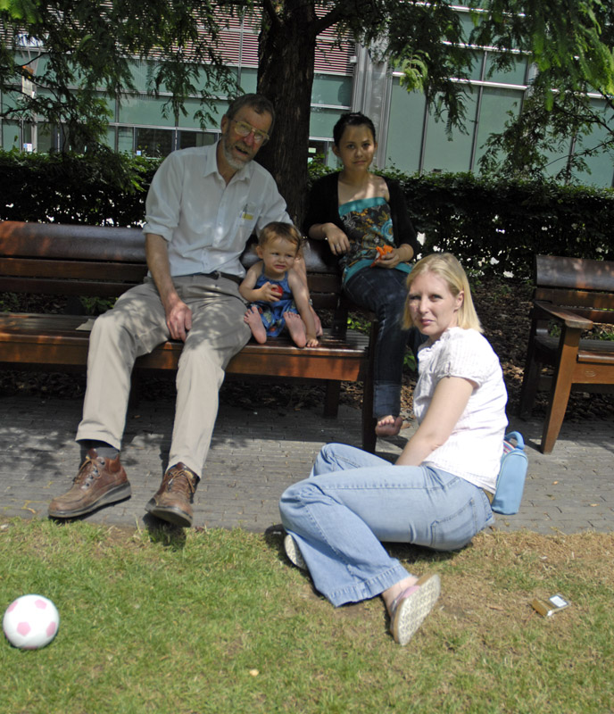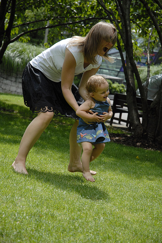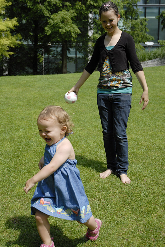 Eimii and Kate playing in the Jubilee park at Canary Wharf. |