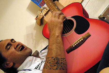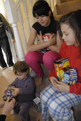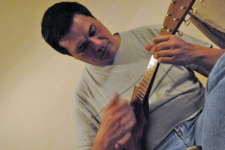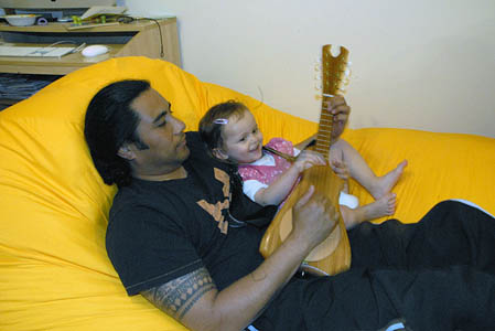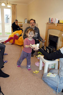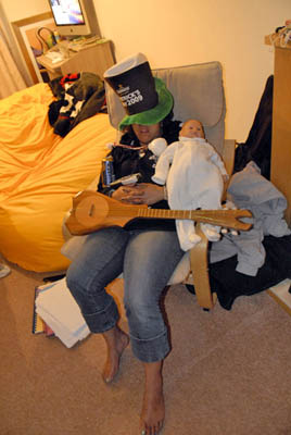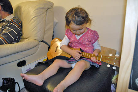 Kate with her new best friend (but only because he had the uke and the bean bag! :) |