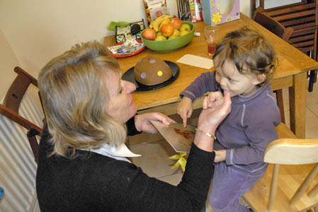 Kate suckering Nanny in to feeding her pure chocolate :) |