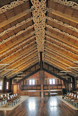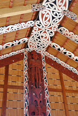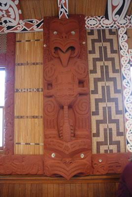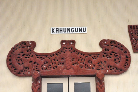 Kahangunu was built after WWII as a War Memorial Hall. It was built by returned servicemen as something for them to do. As the carvers "graduated" their carvings were added to the Whare Nui. Each carving tells a different story from the history of Kahangunu.