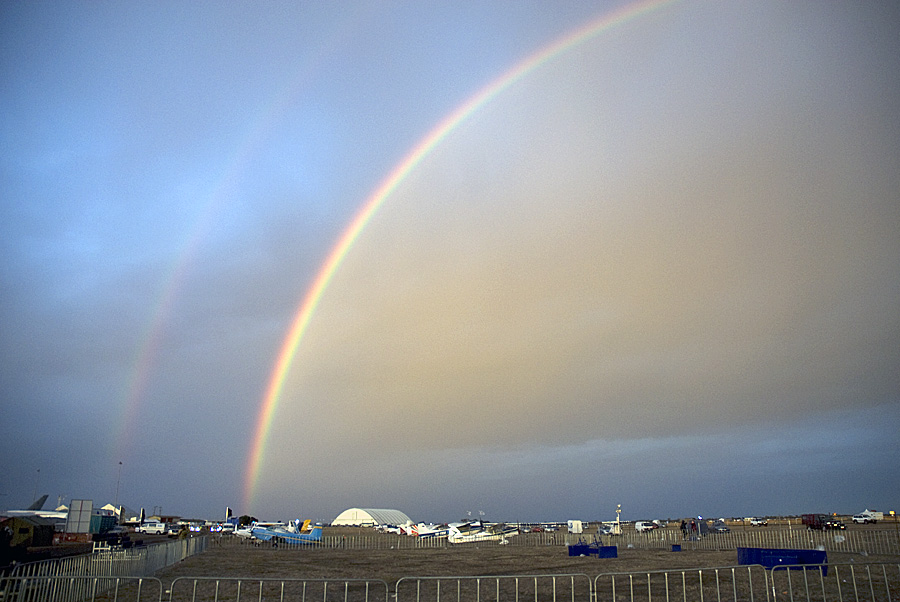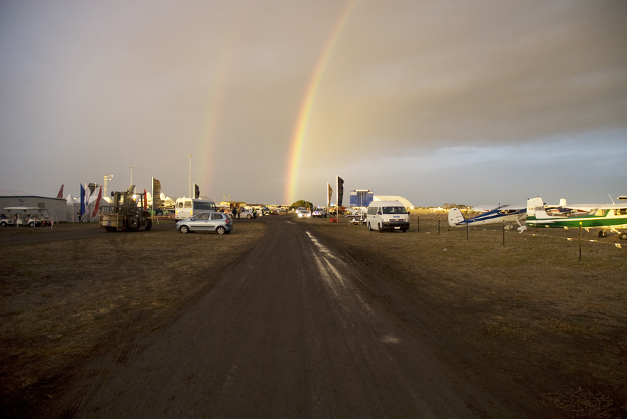 The surreal calm after the storm! A double rainbow, which if you follow will take you not to a pot of gold, but to a couple destroyed micro lights!