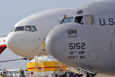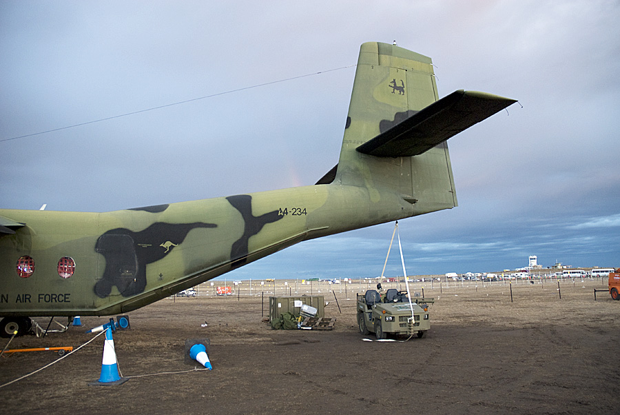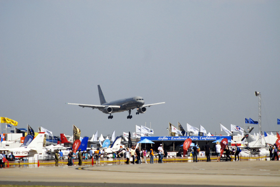 Much ribbing for Scott from his Australian workmates as the RNZAF 757 arrives at the air show