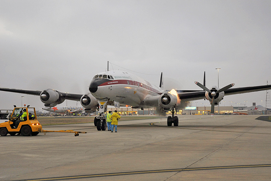 Unfortunately due to the adverse weather conditions on the Friday night, Connie could only do taxi runs up and down the runway. While the plane couldn't fly, it still managed to woo everyone with its throaty radials pumping flames and smoke as it taxied past at full power!