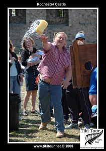 When we arrived at Rochester we found a charity concert and games going on in the grounds. The castle itself has quite an interesting history. It was built on top of the original Roman walls (Watling St is just down the road) by William of Normandy's people. Over time, the castle has suffered several sieges. Probably the most "bloodless" was that of the Peasants Revolt when, in 1381, Wat Tylor and his rebels captured the castle after the warden threw the gates open without a fight. |