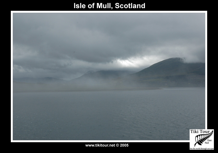 Heading to Mull. As we approach Mull the island was shrouded in mist. Apparently the place receives some of the heaviest rain in Scotland, something we really didn't want to hear about on our summer holiday! :) |