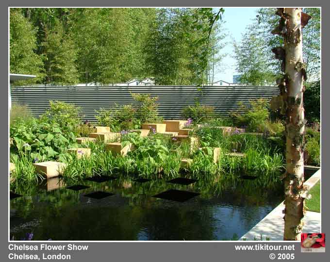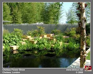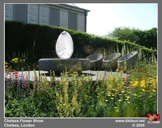 Merril Lynch garden, the show's sponsors | Cancer Research UK garden with its unique oil and light sculpture. |