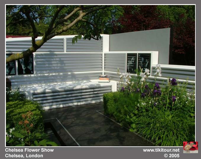 I loved the contrasts in this zany garden 'Reflections' with the bold colour and titaniums panels |
