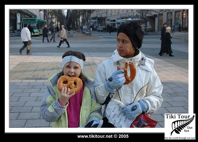 Lunch time! Giant pretzels, or are they? Brezels, as the girls found out, aren't the same as pretzels! And no, they didn't get McDonalds :) |