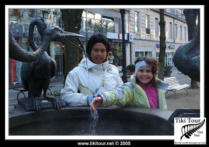 The girls enjoying the warm thermal water Baden-Baden is famous for, this fountain is in the main street. |