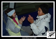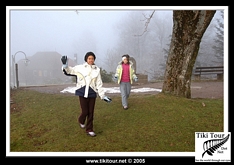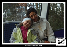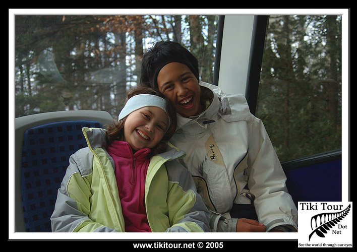 Playing muck-yuck in the Bergbahn as we climbed to the lookout on Merkur Mountain. |
