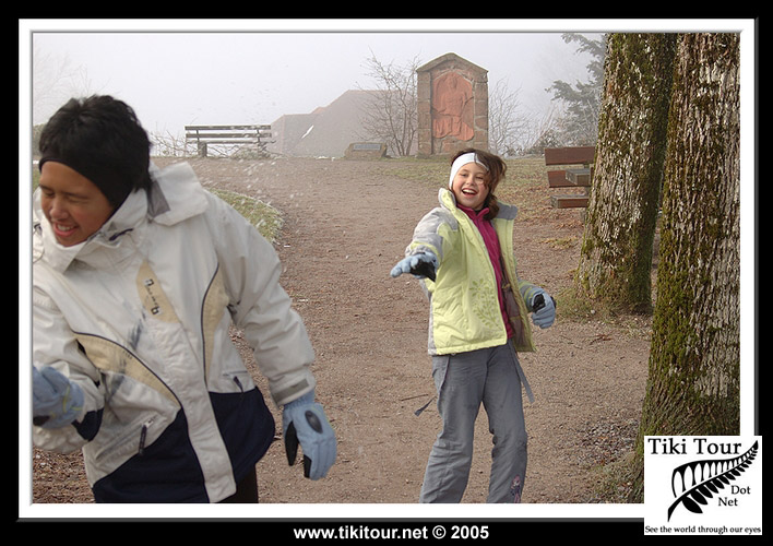 There was snow at the top of the cable car and the girls made use of it as best they could, mainly by throwing it at each other :) |