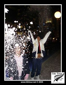 Whetu and Eimii thought it great fun to make snow balls and throw them at daddy! |