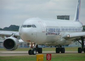 There were several different types of civilian commercial jets an probs on show at Farnborough this year. Probably the best was the Airbus A340-600 and the Boeing South African Airways 747. Several other civi aircraft were also on display, the Airbus A318-100, Embraer 190 and the Gulfstream4.