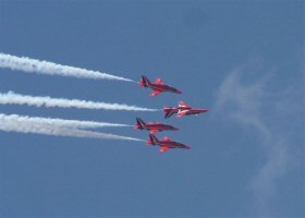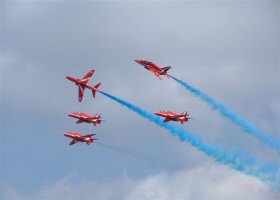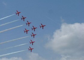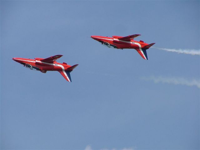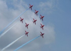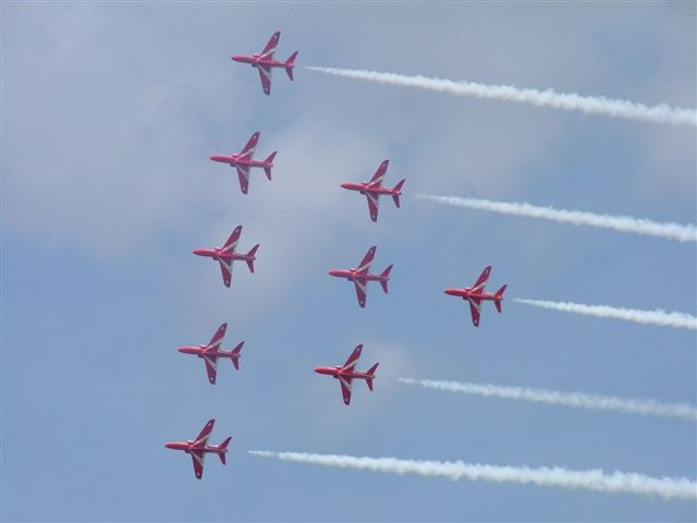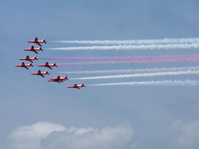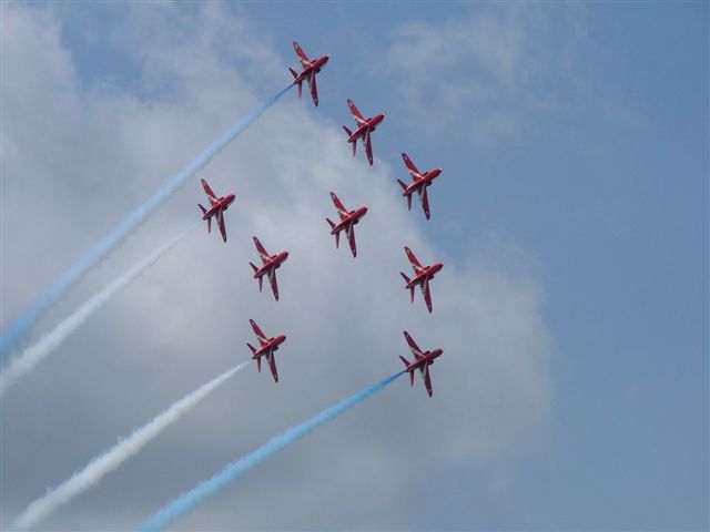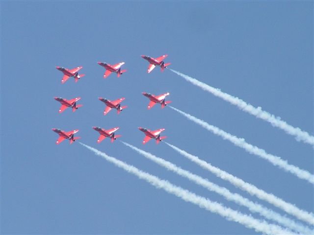 The Red Arrows opened the first public day at Farnborough 2004 with an awesome display of aerobatics! Honestly, next to Red Checkers from NZ, these guys are the best we have ever seen!